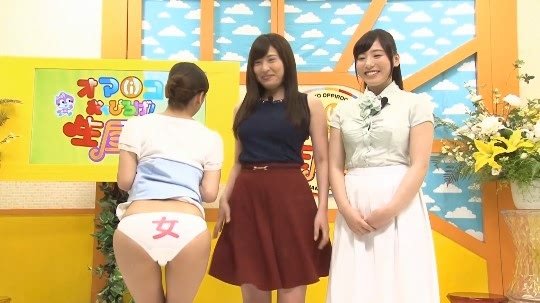 この番組では、女性の下腹部露出は織り込み済み。「どうだ」と言わんばかりに露出したオマンコを指差しアピール!本当に生放送だったらという興奮を覚えます。