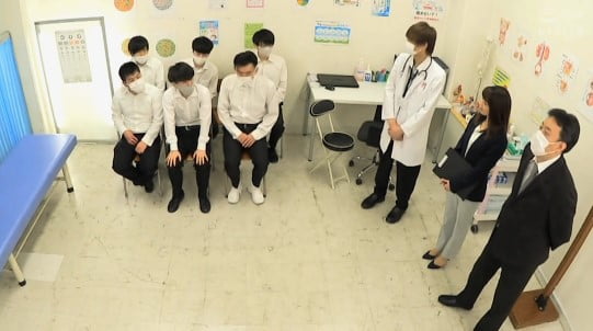 校医が言います。「次は男性勃起測定ですね」「!!!」「じゃあ、順番にいくぞー」
