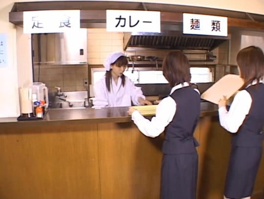 昼休みとなり、社員食堂にランチにやってくる社員。食堂のおばちゃん・・・・じゃなくて、お姉さんが作ってくれています。しかも若くてカワイイです。