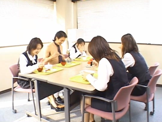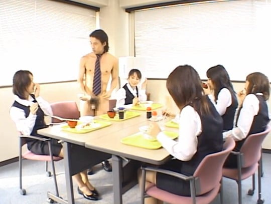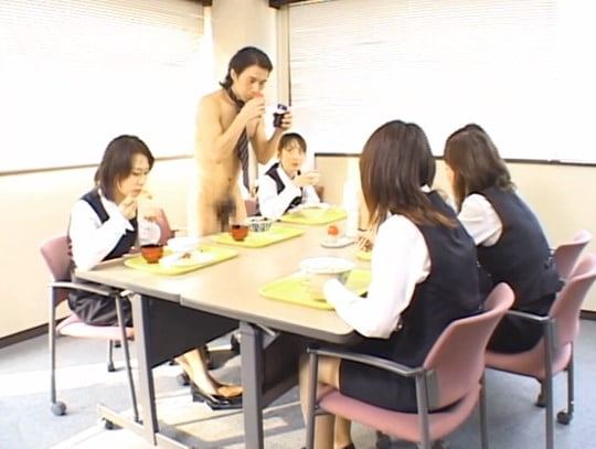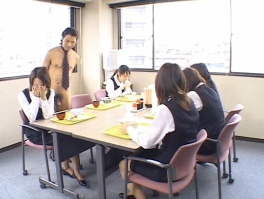当2作目は、男性社員1人だけ全裸ランチです。今回もセクハラ&痴漢行為をしまくり!業務時間じゃなくて、休み時間中の男性器露出しっ放しのフルチンタイムをご覧ください。