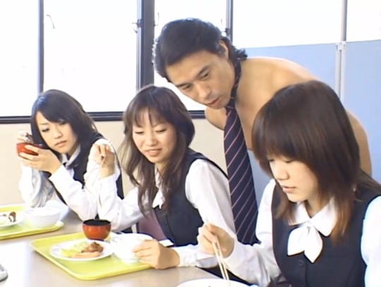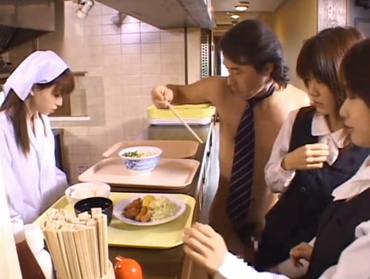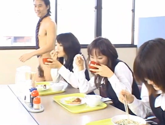 「あれ!?A定食・・・・卵焼きが付くようになったんだね」それぞれの女子社員に絡みまくる全裸男性社員。