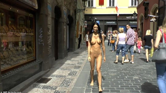 路上を全裸で歩いていく女性。CMNF。