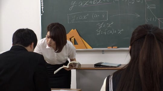 優しく色っぽい女教師に、男子生徒はドギマギ。