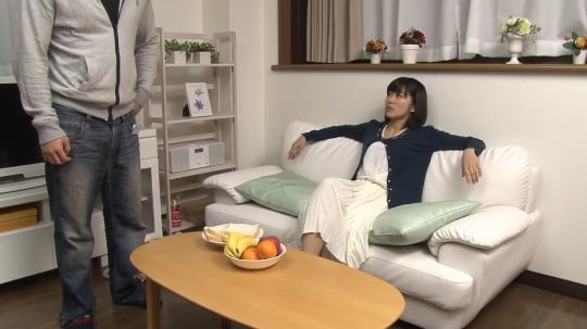 CFNMタマ揉み!下半身丸出しの男と着衣の女性。
