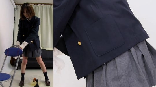 前回の紹介ではストッキング着用のOL風衣装での露出放尿がメインでしたので、今回は女子校生制服での露出立ちションを紹介します。