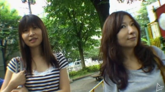 男(個人撮影の監督)が公園を物色していると、若奥様らしき2人組を発見!