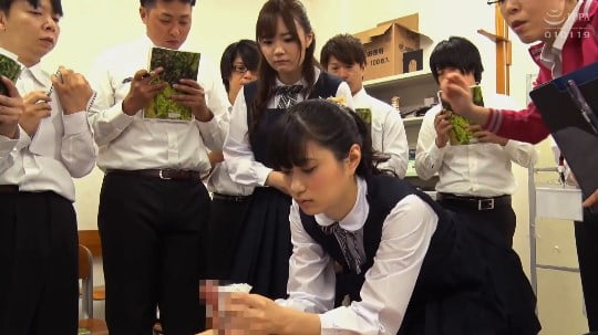 先生が上手くリードしながら・・・・遠慮気味の女子にたっぷり男子のオナニーとチンポを見せることに成功します。