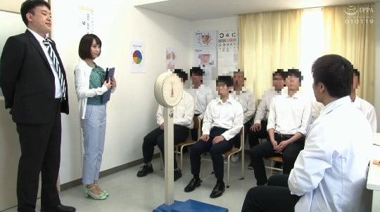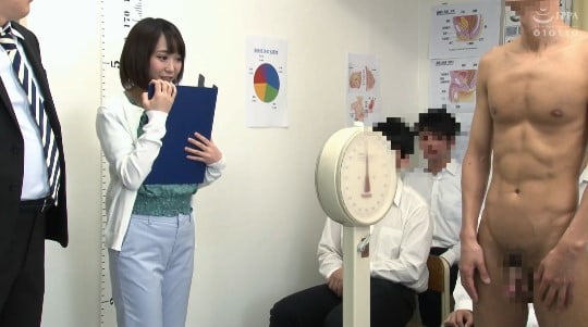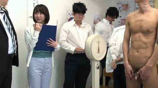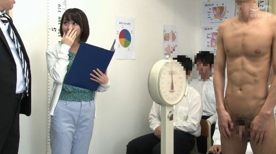 男子生徒のCFNM全裸身体測定が終ると・・・・今度は逆転、姫野先生が一人だけ裸になるCMNFの展開に!
