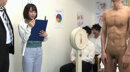 CFNMファンなら一度は夢見る「CFNM全裸身体測定」。裸の男子たちを身体測定する女子、というシチュエーション。当動画では、新任女教師(教育実習生)が男子校で「発育身体測定」とする設定です。