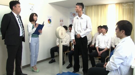 どうしていいか分からず、動き出せない彼女。「姫野さん、目的は勃起測定なんですよ。「勃起」分かります?」「はい・・・・」「どういう状態ですか?勃起は」「え!?・・・・」