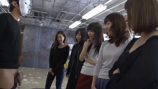 女性5人が、チンポ露出を眺めています。実は、こうしてチンポ露出をじっくり見てくれるということが、なかなか無いですよね。