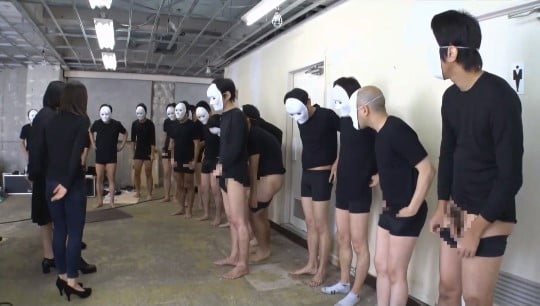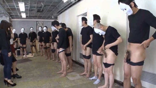 メーカーホームページで「女性に罵られつつセンズリ射精できる方」という募集で集まったM男露出狂の面々。変態M男相手では、対応が雑なぐらいで丁度いいのでしょうか?倉庫みたいな所に集められて、イスすら用意されていません。