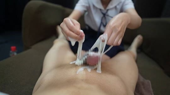 「ミルクスマイル」を使って手コキ。クチュクチュいってます。