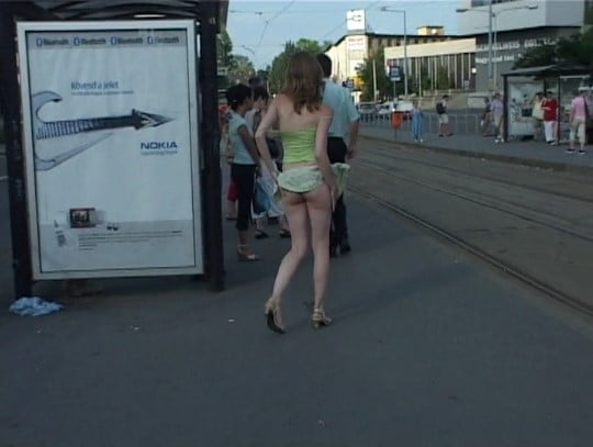 踵(きびす)を返すと、自らノーパンのスカートをヒラヒラさせてお尻露出歩行。