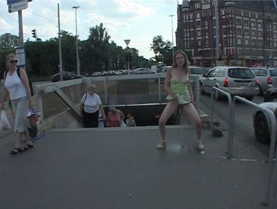 スゴイのは、地下からの階段の上がりきった場所での露出オシッコである点です。最上級のロケーション!次々、上を見上げて階段を上ってくる人がくるハズ!