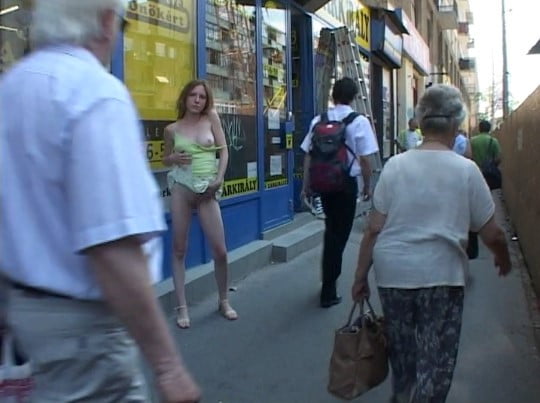しかも、事前調査済なのか人通りも多い!オッパイ乳首を片方だけ露出してウロウロする彼女。乳首露出歩行もイイものです。