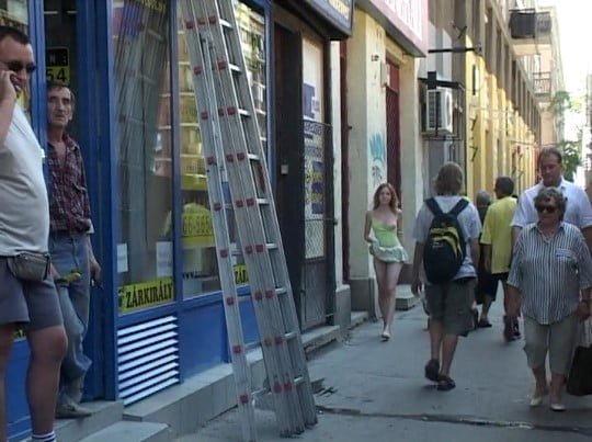人通りの多い広い場所がベストだとおもいがちです。しかしこれを見ると、逆に狭い場所での露出プレーもアリだと気付きます。