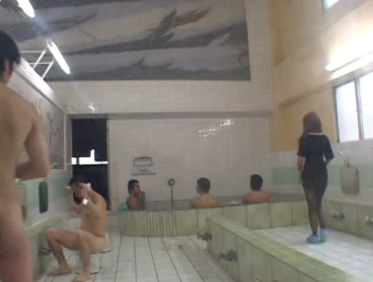 男湯に、着衣女子。