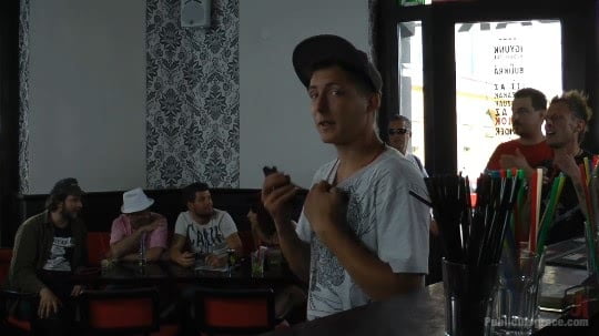 ここで「Public Disgrace」ではお馴染みのボス調教師(極太男根の持ち主)が到着。