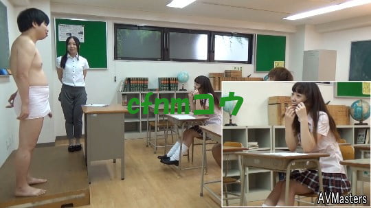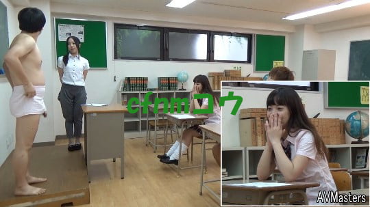 もちろん、大手メジャーAVメーカーのような規模での撮影などできません。庶民の完全自費制作なので規模はかなり小さ目です。が、「男子だけ裸の教室」「男子だけ一方的に羞恥」「チンポを見たがる女子」というCFNMの大事な要素と雰囲気は撮れたとおもいます。