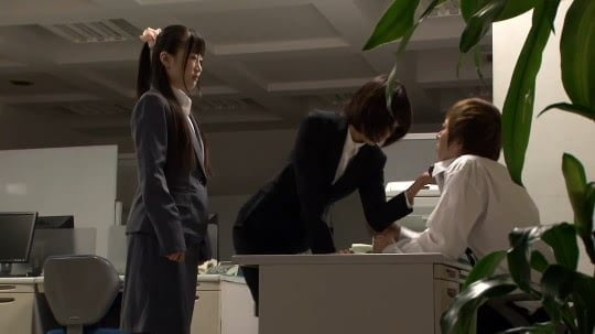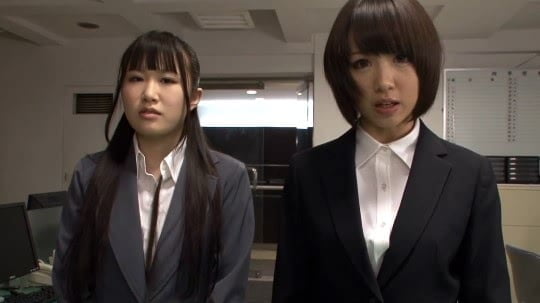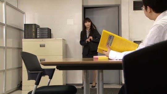 女子がスーツとパンストを完全着衣。逆転無し、性器露出は最後まで男だけ。