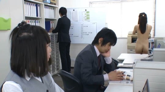 そして注目なのが、CMNFシーンです。職場で一人だけ全裸・・・・その名も「奴隷社員」。