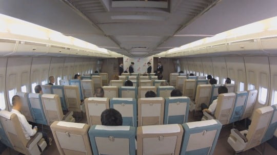 席までご案内する全裸CA。